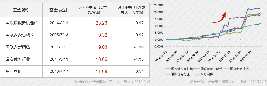 夏普比率是計(jì)算投資收益風(fēng)險(xiǎn)比的重要指標(biāo),數(shù)字越大代表相同風(fēng)險(xiǎn)波動(dòng)下預(yù)期收益越高。自2014年六月計(jì)算,代表藍(lán)籌的滬深300sharpe3.16,當(dāng)年收益冠軍工銀金融地產(chǎn)3.93,推薦打新基金平均則高達(dá)6.32,其風(fēng)險(xiǎn)收益顯著占優(yōu)。平均年化sharpe